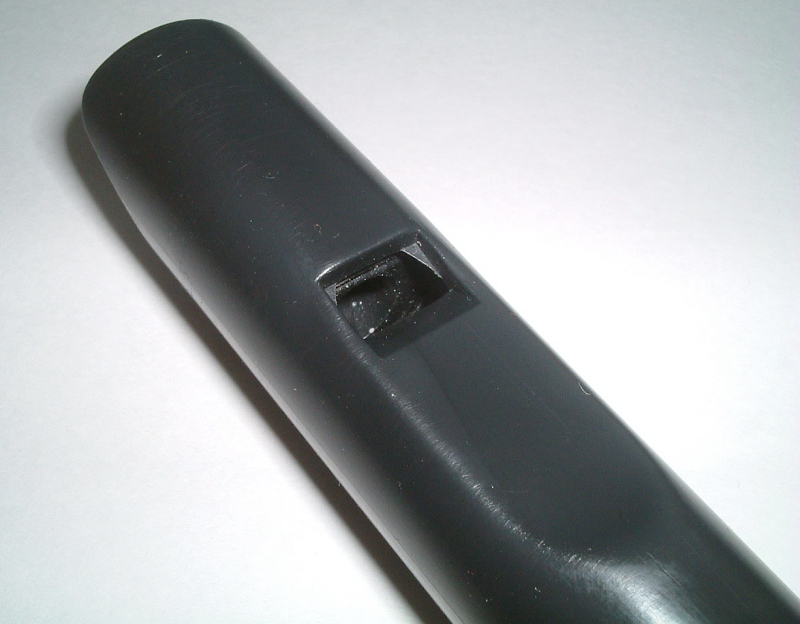 ちなみに、部品点数は4個です。ヘッド、ヘッドのウインドウェイに差し込まれている棒、管体の上部、管体の下部です。管体が二分割の部品になっていて、それで全ての部品が接着されています。ですので部品点数は4個でも、結局は笛としては1ピースということですね。