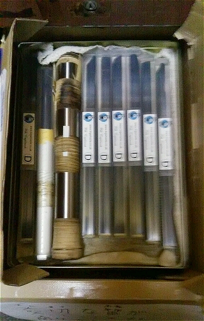 はい、合計9本届いて、そのうちの1本はある人に差し上げて、あとの8本の中から外見的な仕上げが好み(この基準がまた細かい)のロットを選りすぐって、保存用に4本選び出してカギ付き引き出し(別名:金庫)に保管して、あとの4本は練習とかの実践用という風に分けてます。