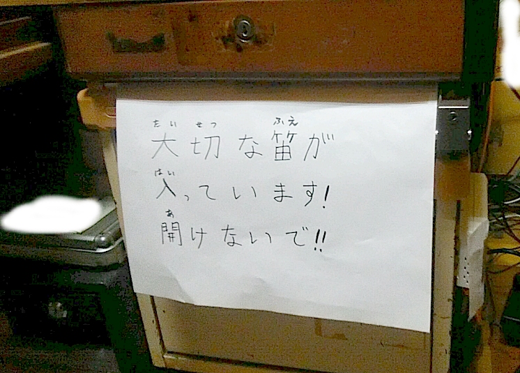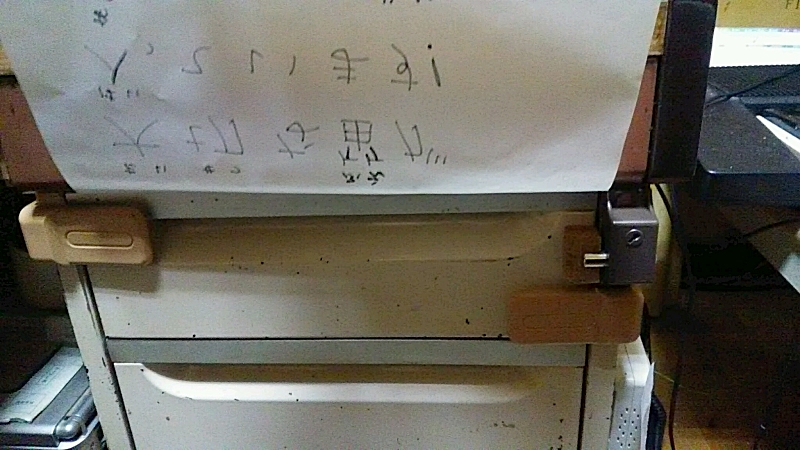 これで机の右側の引き出し三つ全部がロックで守られています。笛は全部ここに厳重に保管されていますwww