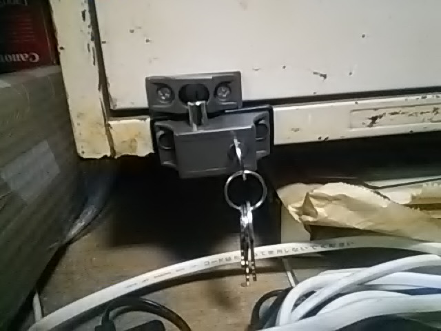 そして引き出しを閉めて、今回買って苦労して取り付けておいたカンヌキタイプの錠前「インサイドロック」でロックします。机は鉄製なので穴開けに苦労したんですよね〜。あの作業疲れたわー。この錠前「インサイドロック」は、カンヌキを閉めると錠前本体を土台に取り付けている部分のネジが薄い鉄板で隠れる仕様なので、カンヌキを閉めていれば錠前を取り外すことさえできないので、盗難防止効果はバッチリです。カンヌキを押すだけでロックされて、解錠する時にだけキーを使うので手軽で好きです。また、誰かのいたずらでカンヌキを閉めることができないようにすることも可能なので、優れものかも。