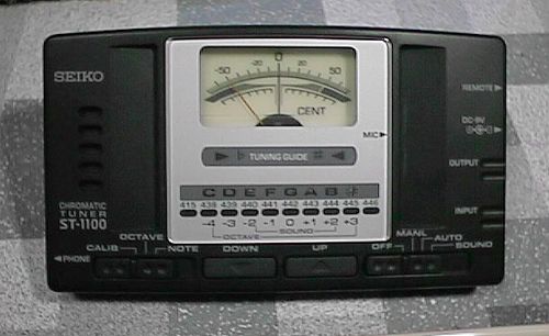 この作業にはクロマチック・チューナーであるSEIKO ST-1100を使いました。これは1セント単位で音程を測れるのでかなり便利です。