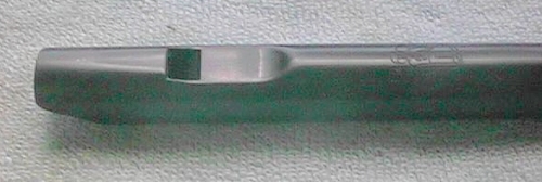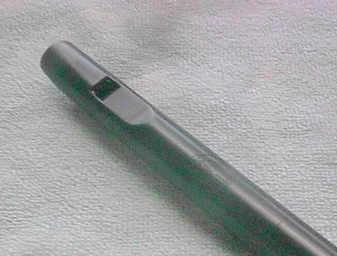 具体的にいうとこのSVは、特にハッキリ違いが解ることは、高音部のキンキンした音色が和らげられたかんじですね。ウインドウェイの出口の左右に小さな斜めのエッジがあって、そのおかげで音色が変わったんだと思います。このエッジも、ディクソンのメーカーがBig Whistle Musicのために特別に作ったと思われるSVにしかない特徴です。