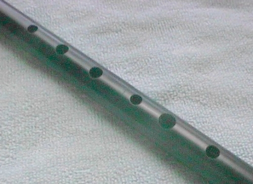 と、最後の材質を含めれば、こういう四段構えで信じられないくらい息がラクで音量も抑えられていて、音質もティンホイッスル特有の高音部でのキンキンした部分がかなり無くなっています。A=440Hzでも本当に全体的に「優しく柔らかく静かに」吹けるし、回りの人たちにもうるさい思いをさせないで済むし、高音部でのキンキンした耳障りな音を聴かせてしまうこともないんです。