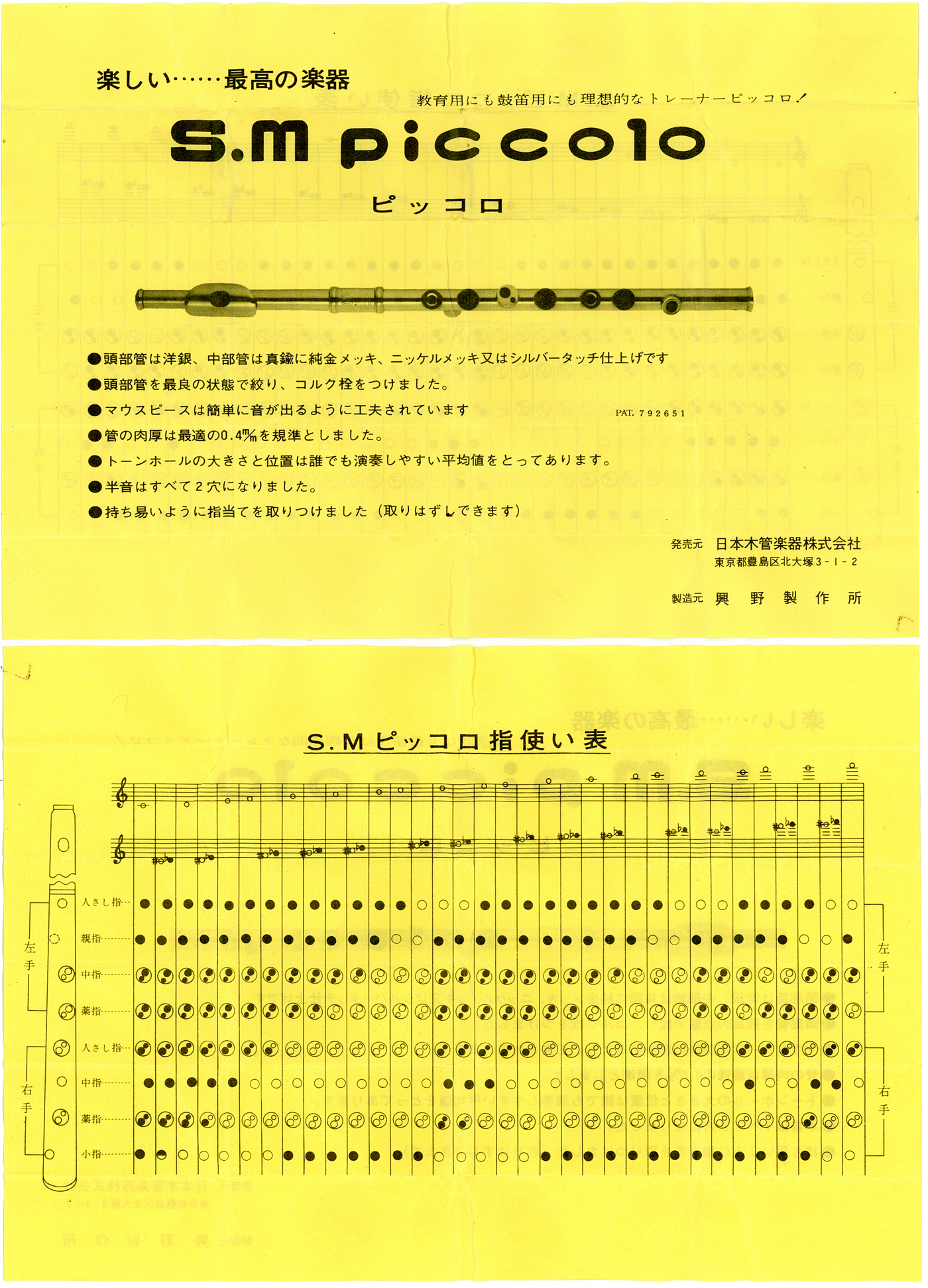 S.M JAPAN製のフォーク・ピッコロ(folk piccolo)。商品名はコンサイス・ピッコロ(concise piccolo)というらしいです。
