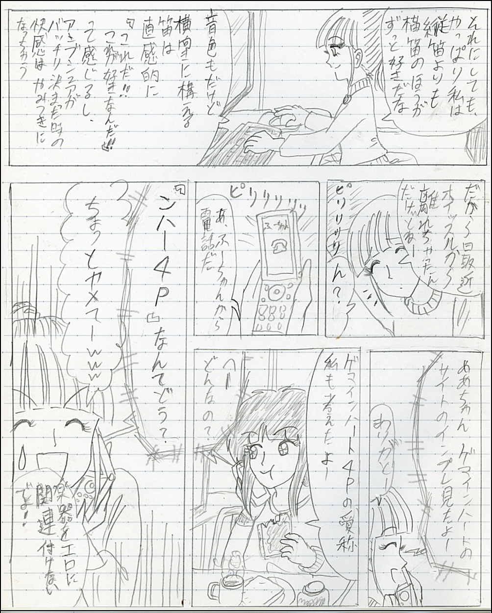 蛇足ですが、その中学時代に描いていたノート漫画の主人公の苗字が「瀬川」でして、当時の私の性格や言動や仕草をそのまんま主人公に反映させて趣味を100%さらけ出して、読み手を全く意識していなかったので、とっても楽しく気楽に描けていました。