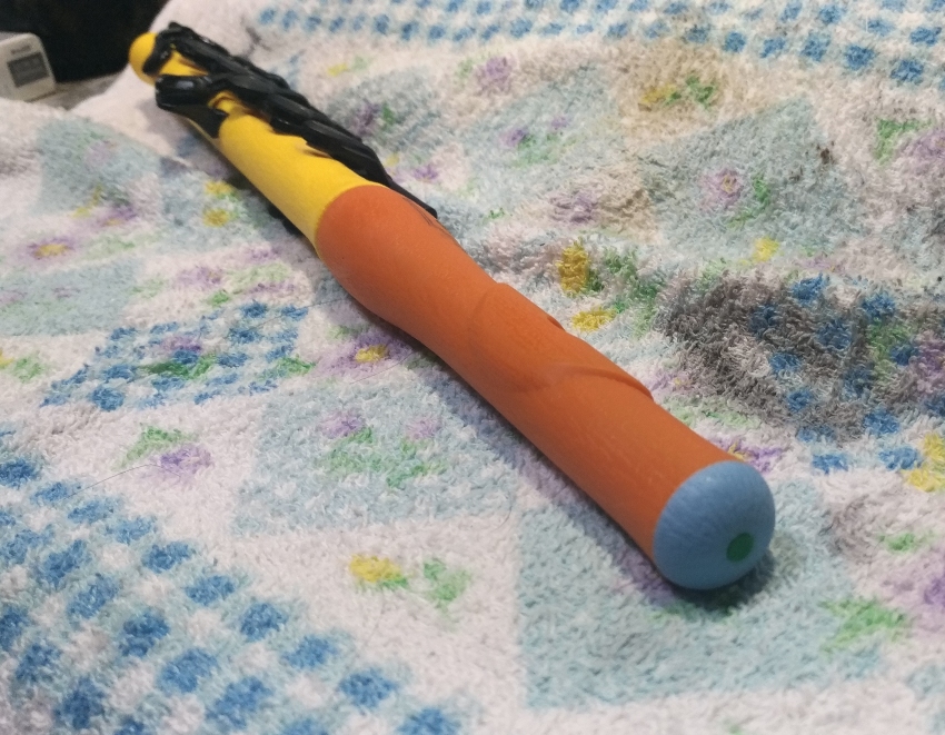 管体を黄色、頭部管をオレンジ、クラウンキャップを水色、ストッパーを薄緑色に配色してもらいました。