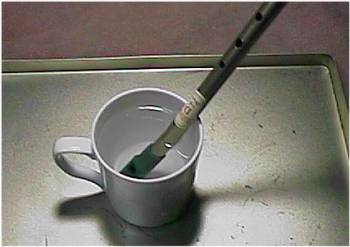 2〜3分間経ったらカップから取り出して、管体とマウスピースを持って、左右にねじるように回しながらマウスピースを抜きます。