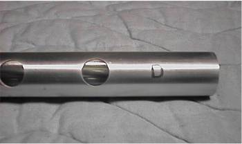 ヤスリで削る時に注意したほうがいのは、管体の中に折りたたんだ紙を突っ込んでおくことです。でも別に紙じゃなくてもいいです。要するに、ヤスリで削ってる時にヤスリの先端部分で管体内部を傷つけないようにすればいいです。それから、うっかり手が滑ってヤスリで管体表面にもキズをつけないようにしたほうがいいでしょう。表面ならキズがついても気にしないという人はいいですけど。