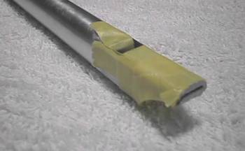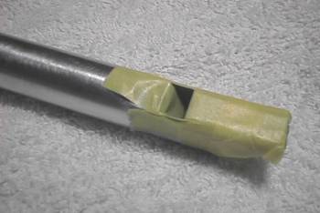 これをウインドウェイ内部にズボッと通して、ウインドウェイ表面にアルミパテを塗ることによって狭くしました。