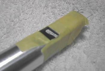 作業を始める前に、アルミパテがくっつかないようにマウスピースの周りをマスキングしないと、ということで、プラモデル用のマスキングテープを張りました。