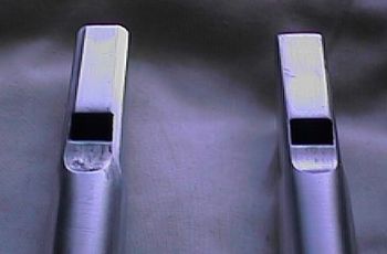 なので、マウスピースを加工して仕上がった改造版とノーマルを並べて、どういう風に違うのかを写真で紹介します。