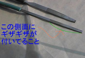 この作業は、ヤスリの側面のギザギザを使ってウインドウェイを削るので、そういうヤスリが必要なんですよ。