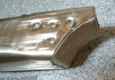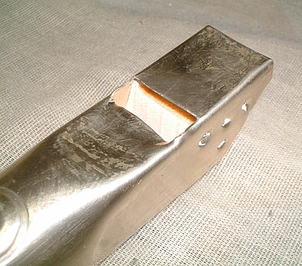 木のブロックはカシメでしっかり止められているので、ブロックがポロリと落ちる、ということは無いようです。でも長期間吹いてると、木のブロックが水分を吸収してきてウインドウェイがダメになっちゃうので、腐食防止のために、ブロックが見えてる部分全体に塗料を塗っておくといいでしょう。塗料はDIYセンターなどで売ってるもので充分だと思います。でも、木のブロックを塗装するのは、あくまでその場の気休め程度です。「木のブロックを塗装して腐食を防ぐ」というのは昔から知られている方法ですけど、これは単なる一時しのぎにしかなりません。木は温かい音色を生みますけど、水分に弱いことが残念といえば残念。
