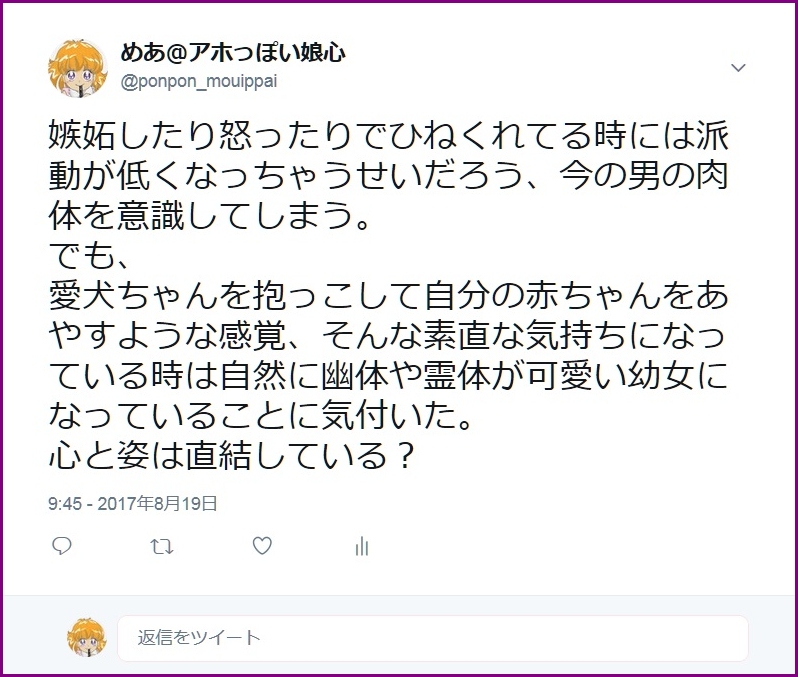 確信が持てたような気がする。先輩の言うことは素直に信じよう。そしてもっと幼女の心になりきれるように頑張ろう。奨めてきてくれてアドバイスもくれて、ありがとう先輩。