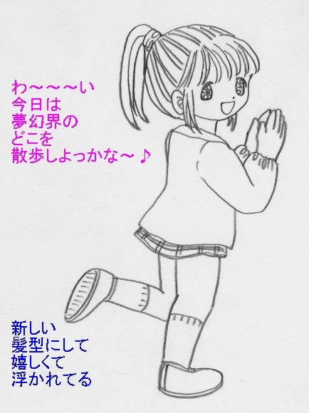 「変身したい姿のイラスト」に絵を一枚追加しました。「芦田愛菜さんの影響でポニーテールに」。でも久しぶりに描いたせいか、今回はあんまりかわいく描けなかったし、デッサン狂いまくり…。