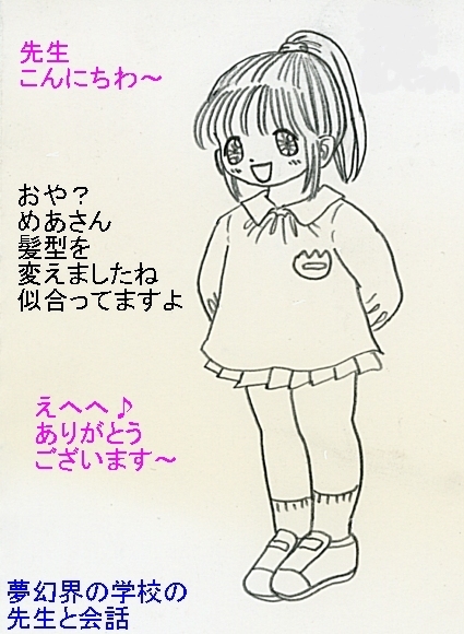 「変身したい姿のイラスト」に絵を二枚追加しました。「新しい髪型にして嬉しくて浮かれてる」「夢幻界の学校の先生と会話」。リハビリも兼ねて描いていこうかな、と。